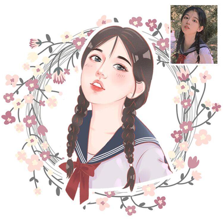 Japanese realistic hand-drawn avatar design Couple cartoon simple pen cute real photo wedding gift comic custom