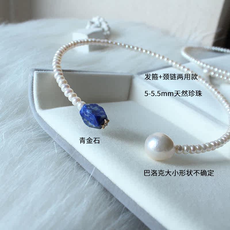 Plain circle full pearl 5-5 5 collar Rice-shaped ending lapis lazuli Baroque collar 4 5cm gold ball pendant collar