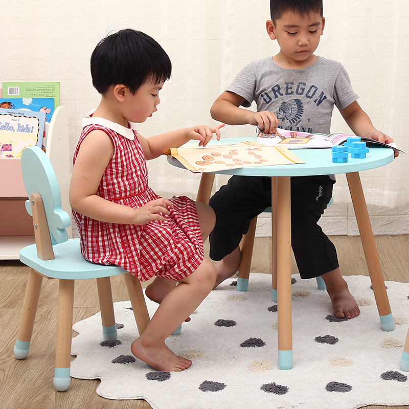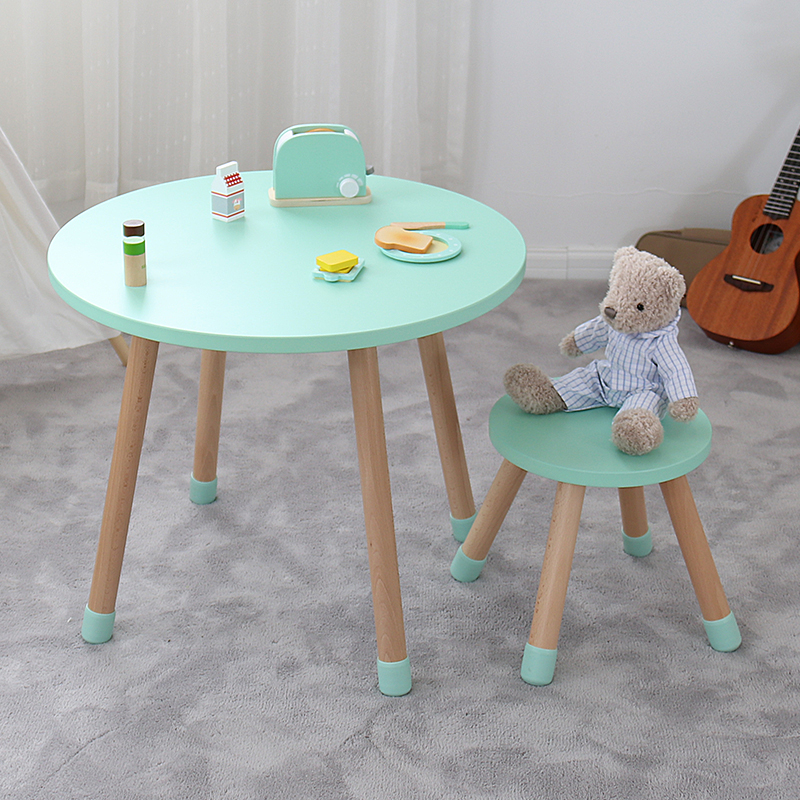 Gray round table Gray round stool Pink round table Pink round stool Green round table Green round stool White round table White round stool Blue round table White powder octopus chair Blue round table White blue fish chair Blue round table