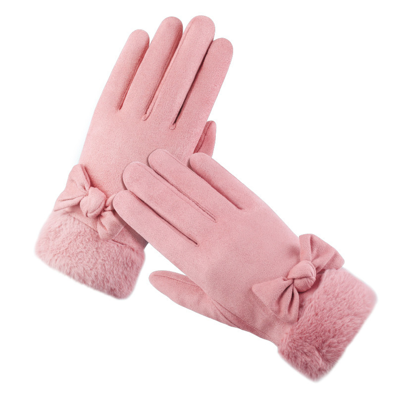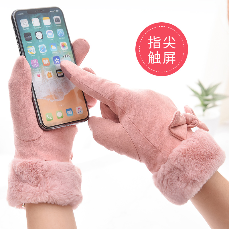 Autumn Winter Warm Gloves Lady Thickening Students Outdoor Riding Car Anti-Chill Suede Touch Screen Gloves