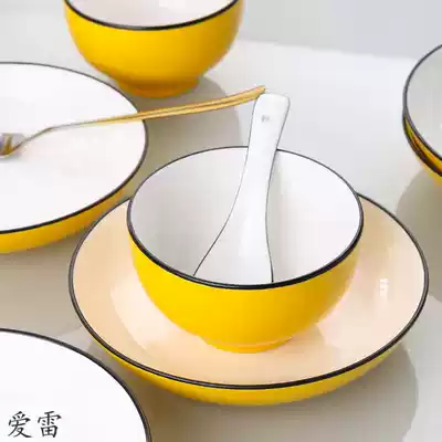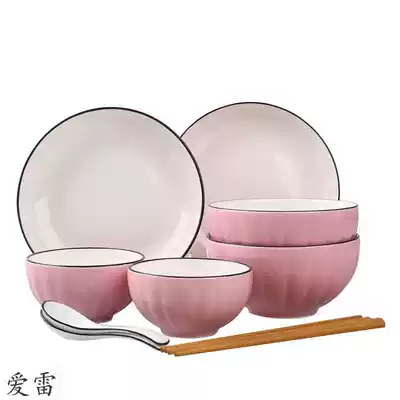 Japanese-style 2-person couple dish set Household ceramics Nordic simple creative single bowl chopsticks combination noodle bowl tableware