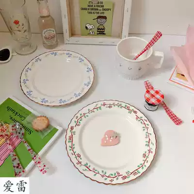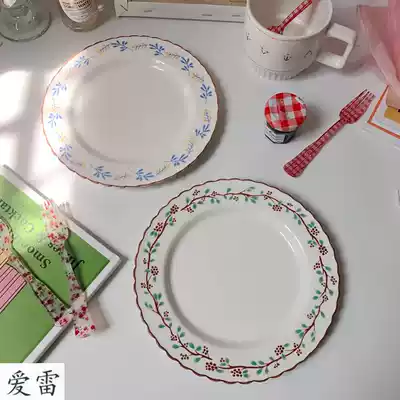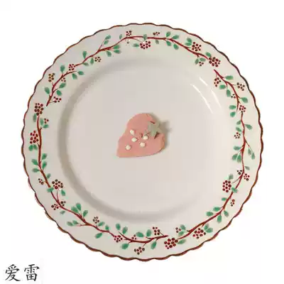ins Korean wave edge flower red raspberry ceramic dessert plate Western steak plate Cake plate Household dinner plate