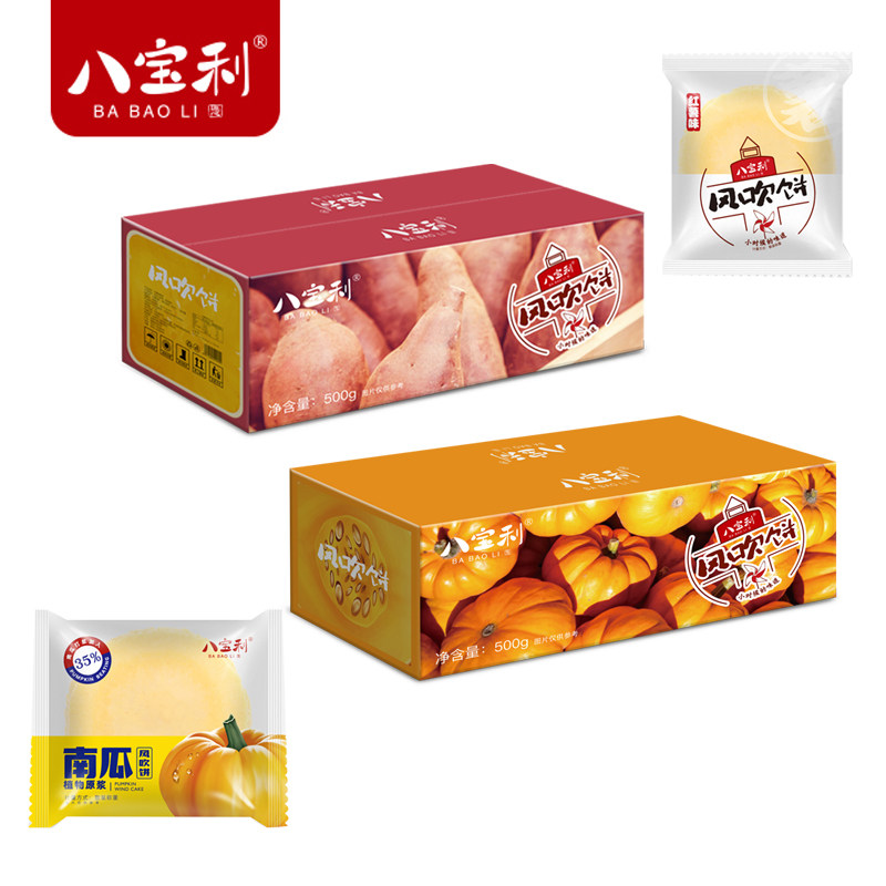 Babaoli Sanhe Sweet potato pumpkin cake Pancake small package Crispy snack food meal replacement Whole grain wind blown cake whole box