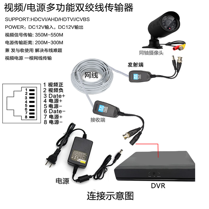 Surveillance video power supply 2-in-1 twisted pair transmitter coaxial high-definition analog camera to network line integrated
