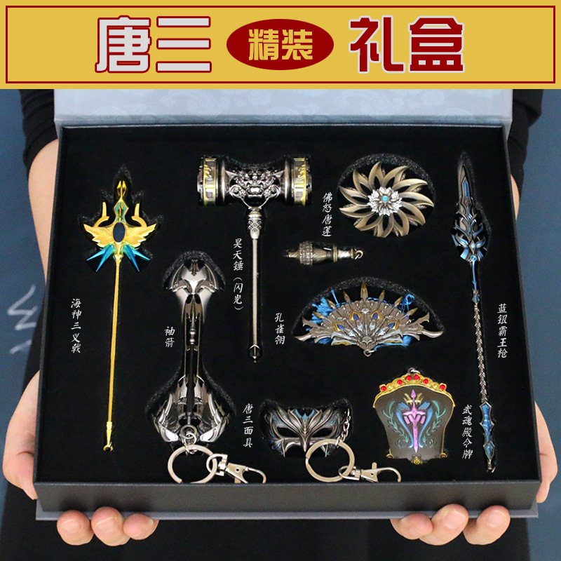 Tang Three 8 pieces of gift box 15 cm flash Hao Tiansledgehammer (with a collection of single delivery 1 Soul Ring Base) Tang Three 8 pieces of a kit gift box 12 cm thunder and blue Hao Tianhammer (with the collection of a single sending 1 Soul ring base) (1) (1)