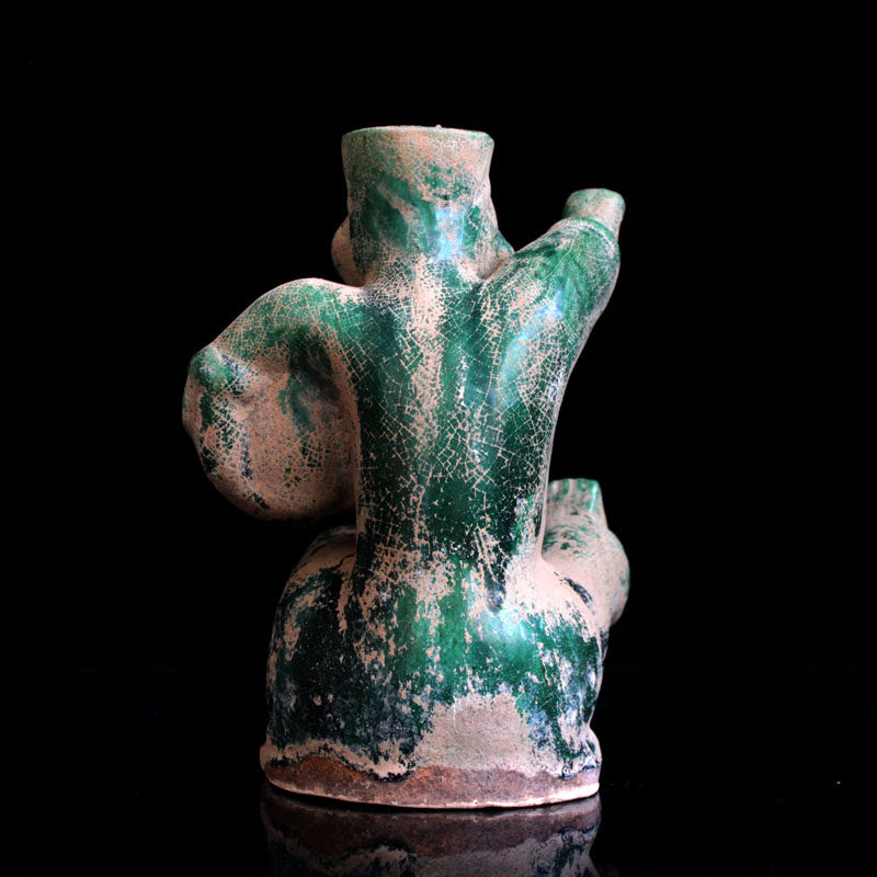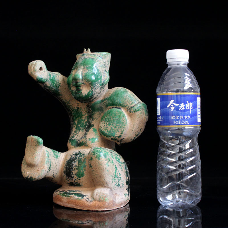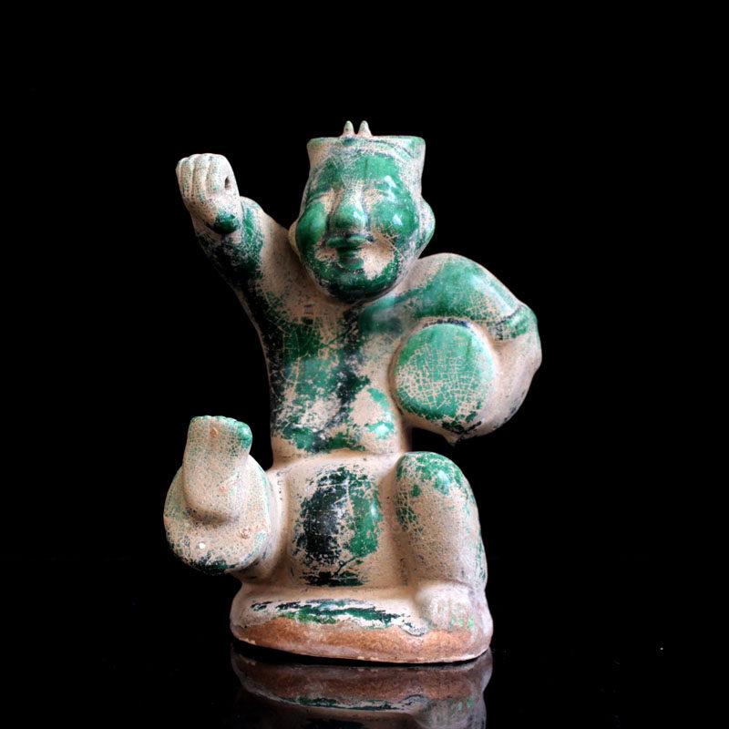 Han Dynasty drumming rap figurines antique Han green glazed pottery figurines Chinese-style living room home decorations antique collection of art