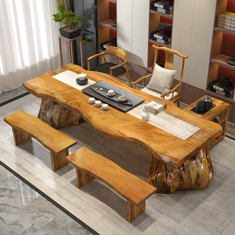 New Chinese tea table solid wood large plate tea table stool combination tea table living-room tea table and chairs Kung Fu 1 m 8 tea table