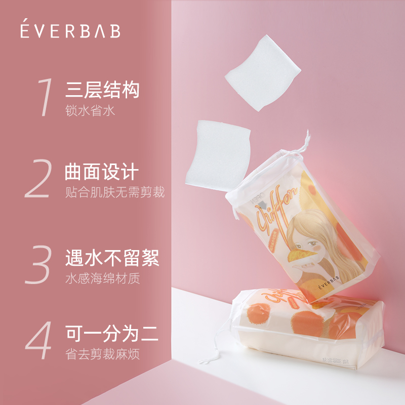 everbab Abella Chiffon water-saving cotton pad 1 2 thin wet compress hydration remover cotton 60 pieces bagged with pure cotton