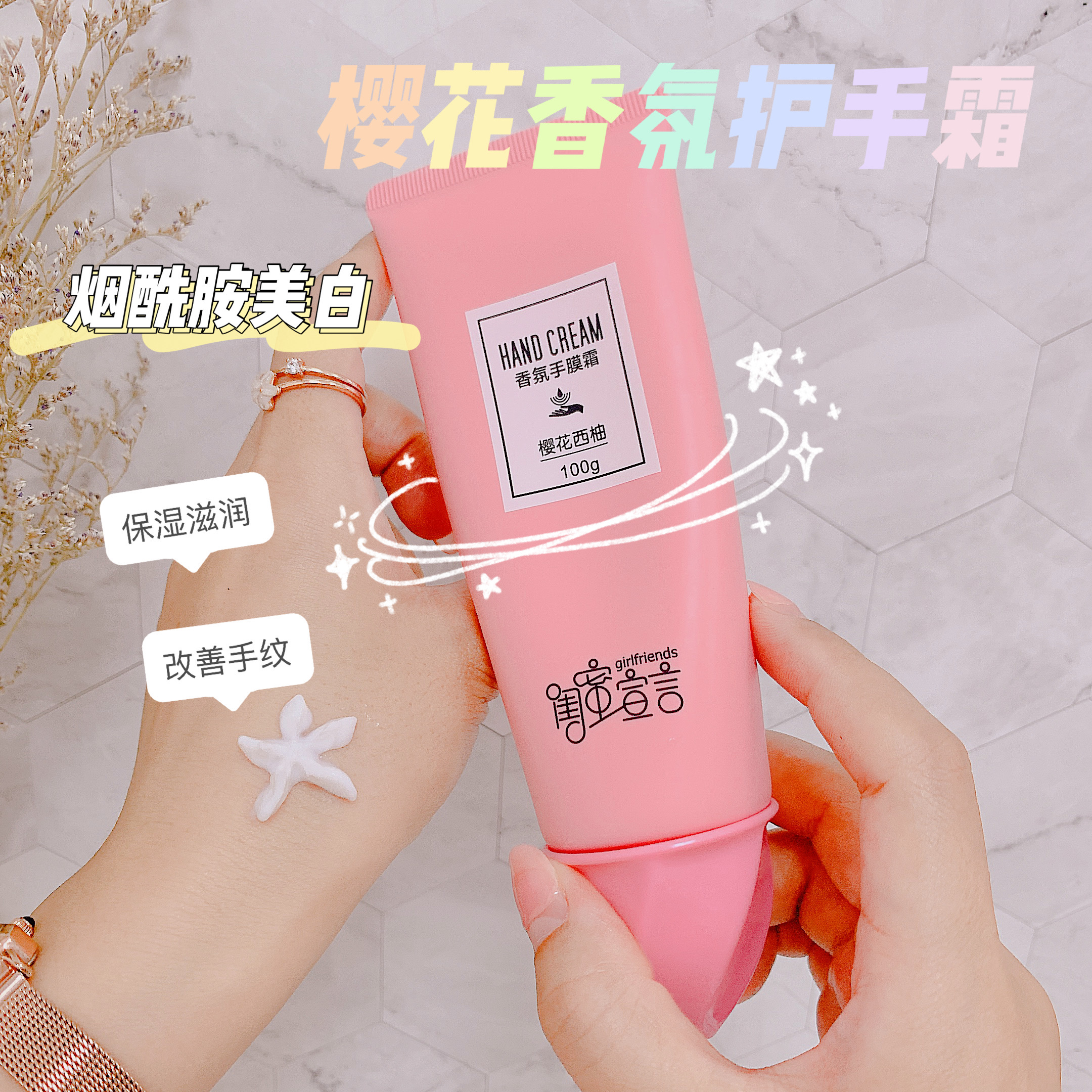 Cherry blossom niacinamide hand cream female moisturizing moisturizing hand mask cream portable portable autumn and winter moisturizing whitening men and women gift box