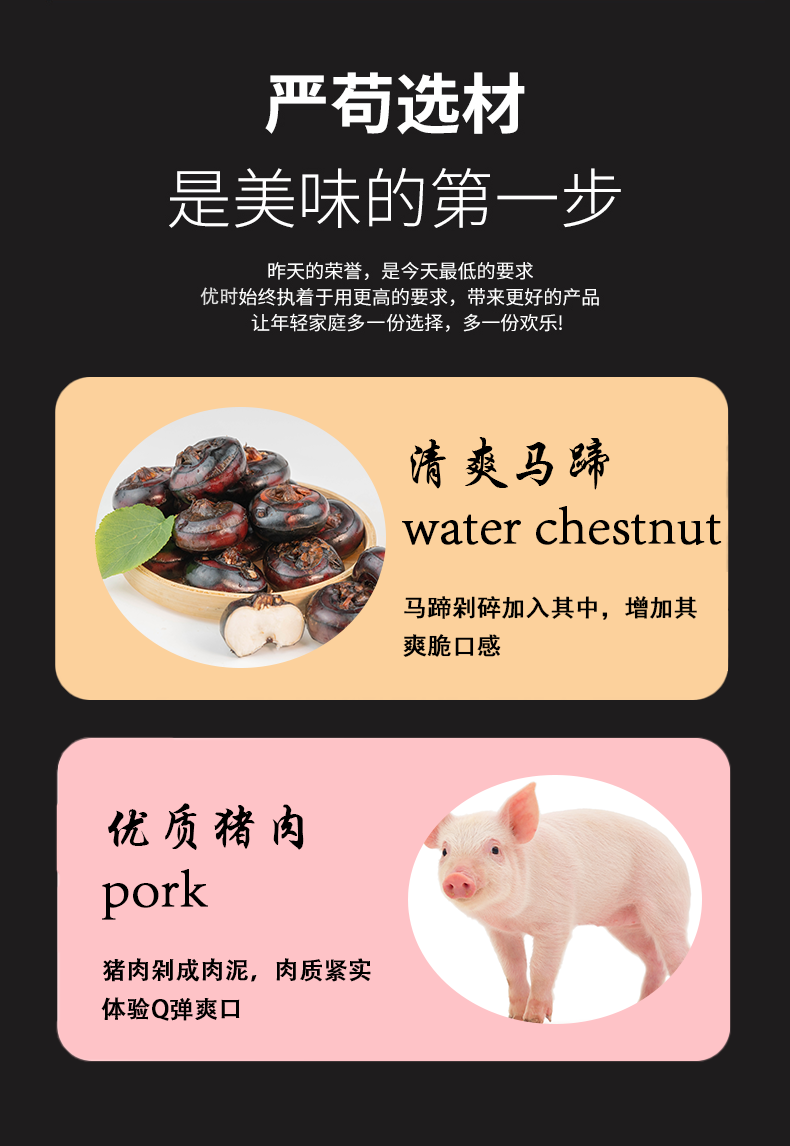 Pork, chicken breast, drinking water, scallions, white sugar, edible salt, soy sauce, monosodium glutamate, tapioca starch