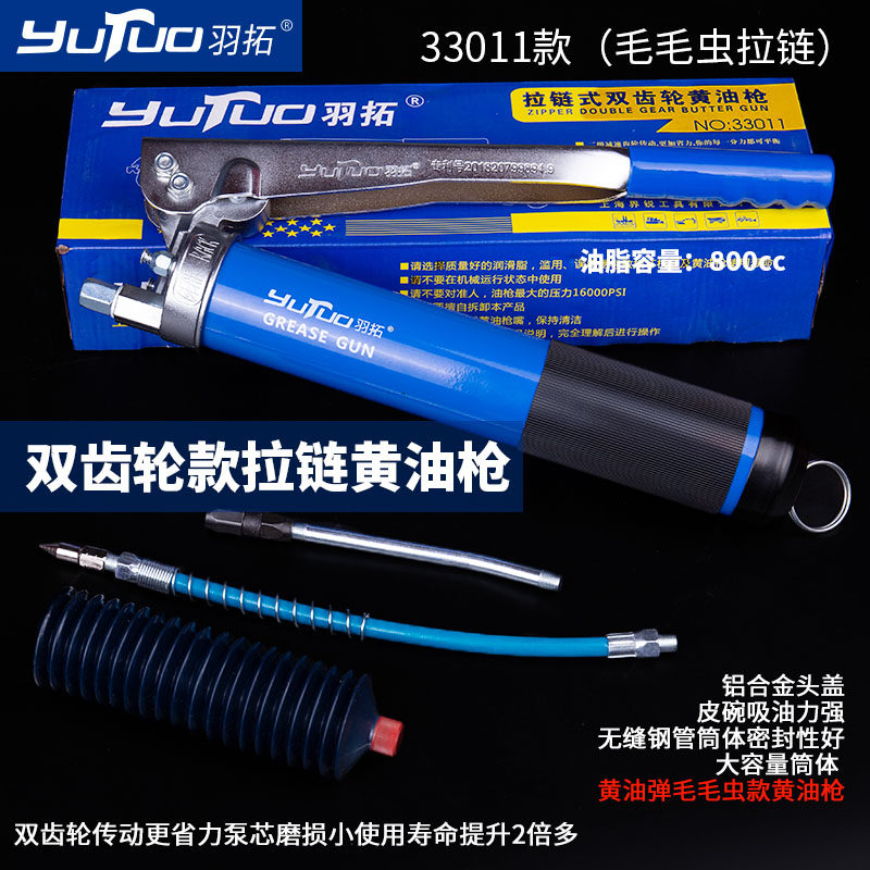 Plume single double gear loose wool caterpillar pipe milk oil slingshot rounds grease high-pressure manual labor-saving oil lubricator yellow oil gun