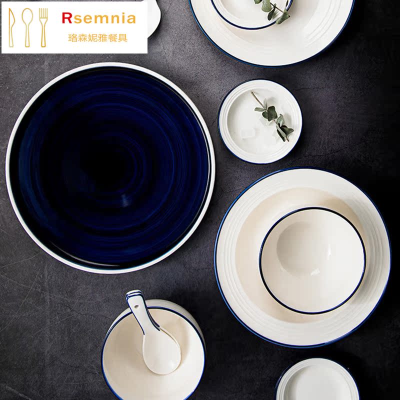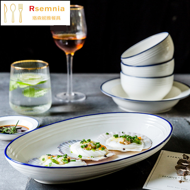Rsemnia Home Nordic Ins Brief Dishes Ceramic Cutlery Cutlery Sets Bowls Dish Chopsticks Pure White Creative Combinations