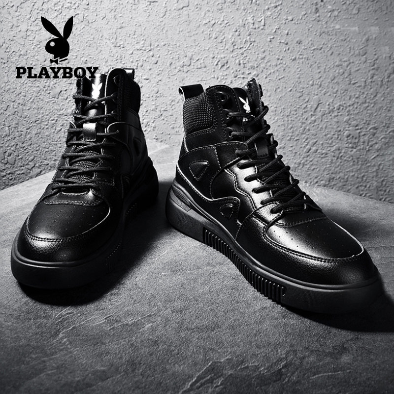 Flowers Playboy High Silo Men's Shoes 2020 Winter New Trendy Sports Board Shoes Men Gush Black Casual Shoes