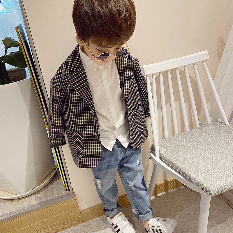 Boy Casual Suit Jacket 2020 Autumn New Foreign Pie Children Little West Suit Handsome Fashion Baby Plaid Top