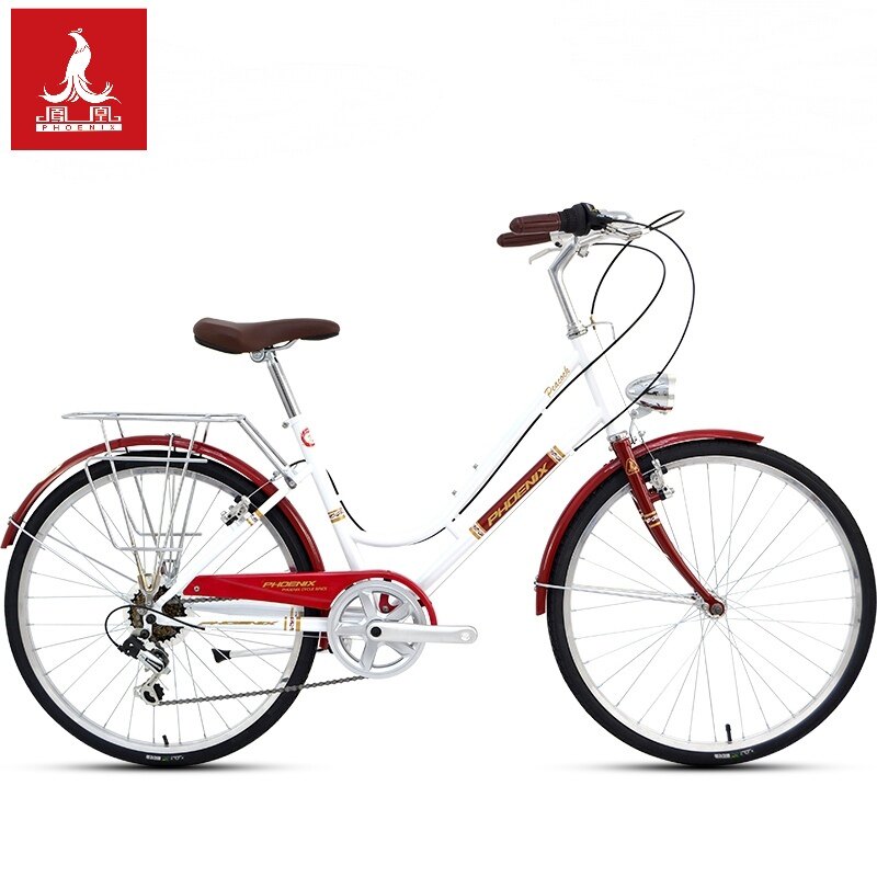Phoenix Bike 24 Inch 7 Speed Retro Light Men's and Women's City Adult Step commuter Single Speed Princess Cycling