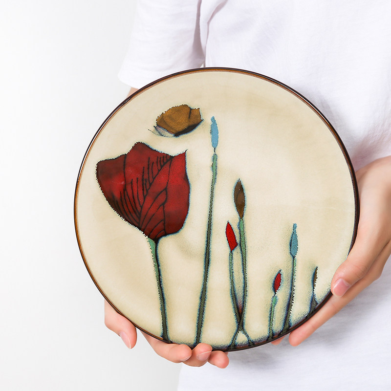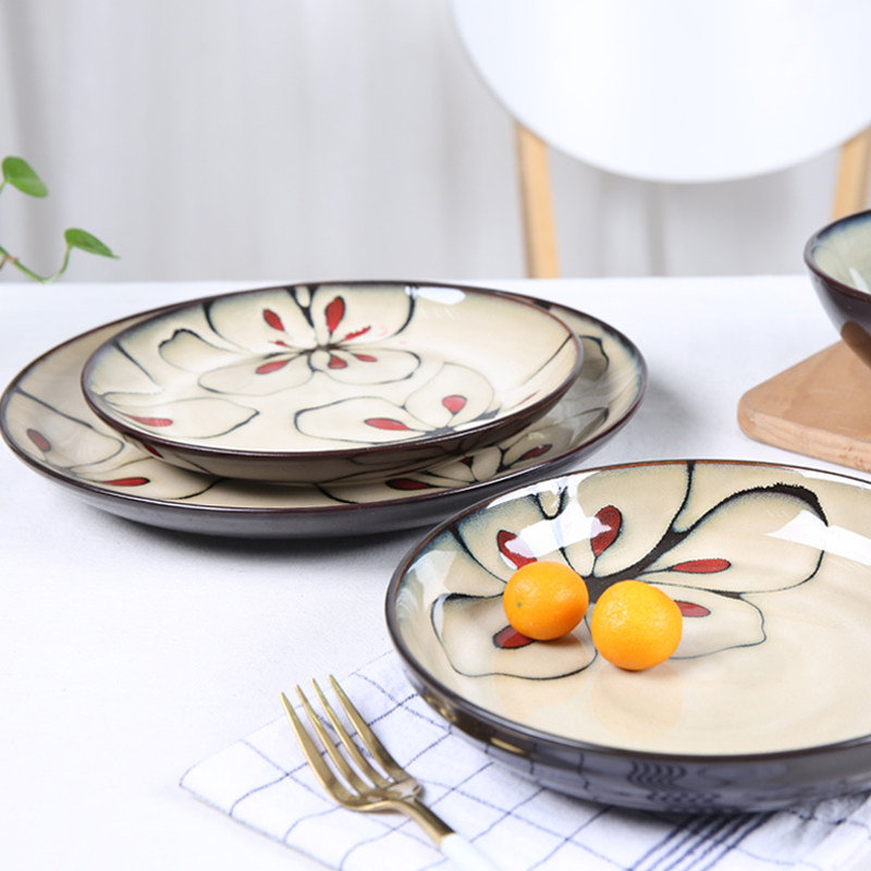 Japanese creative plate Hand-painted deep plate Household creative ceramic plate plate Personality dining room flat plate Steak plate