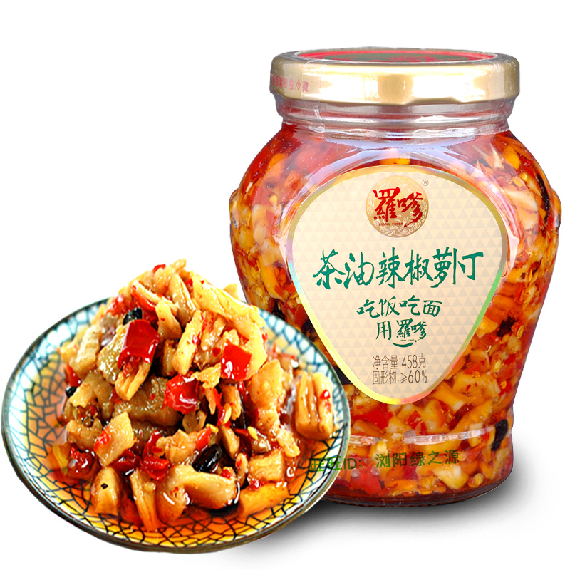 Rotay Tea Oil Chili Pepper radish Ding 458g Hunan Teprolific Spicy Leftover rice vegetable farmers open stomach pickled vegetables chopped peppers