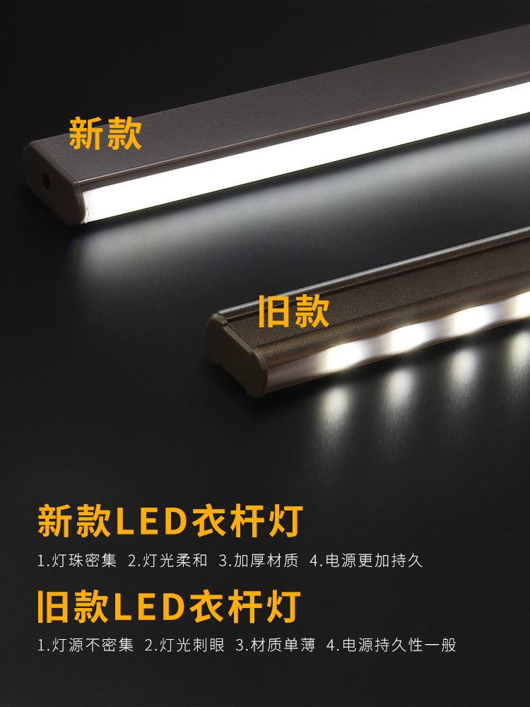 Wardrobe LED hanging clothes pole with lamp intelligent human induction clothes through rod thickened clothes closet lever lamp crossbar charging connection
