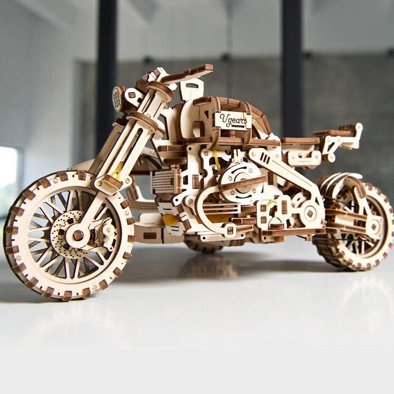 Ukraine UGEARS sidecar locomotive wooden assembly transmission model toy Scrambler retro locomotive