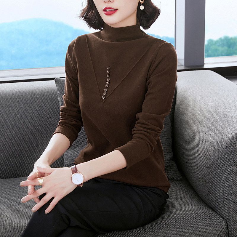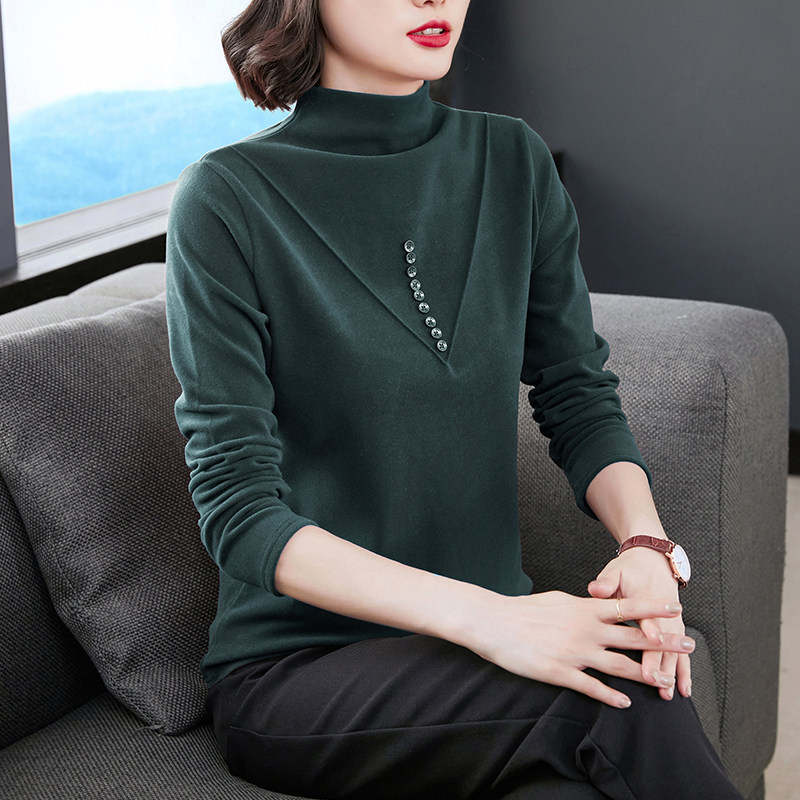 Bottom shirt women's spring and autumn de velvet heating warm top with thickened long-sleeved half-high collar middle-aged mother's t-shirt