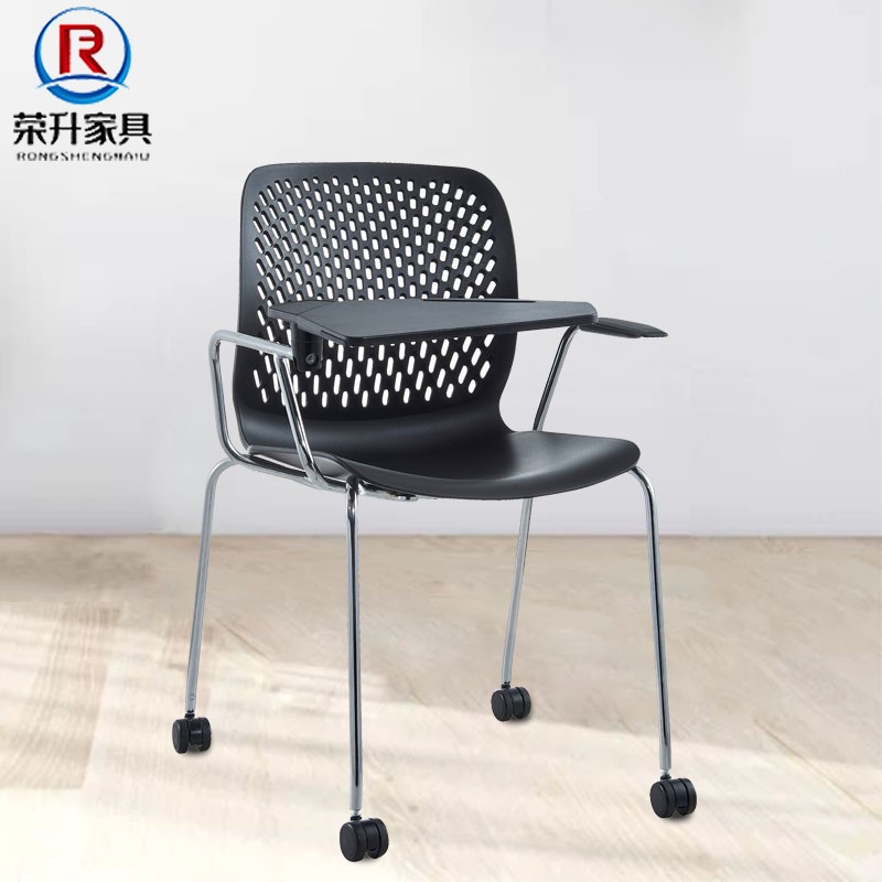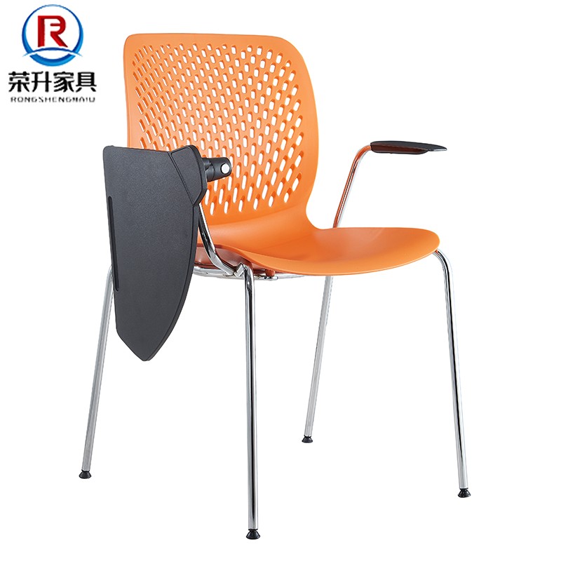 Hollow Design Plastic Seat Student Staff Conference Chair Record Chair with Armrests Orange Stackable Table Sliding Wheelchair
