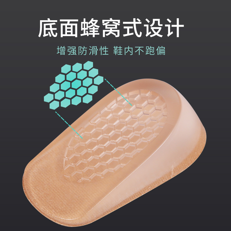 Invisible silicone inner height-increasing insole for men and women, soft bottom, comfortable and not tired feet, shock-absorbing heightening pad, foot pad, heel half pad