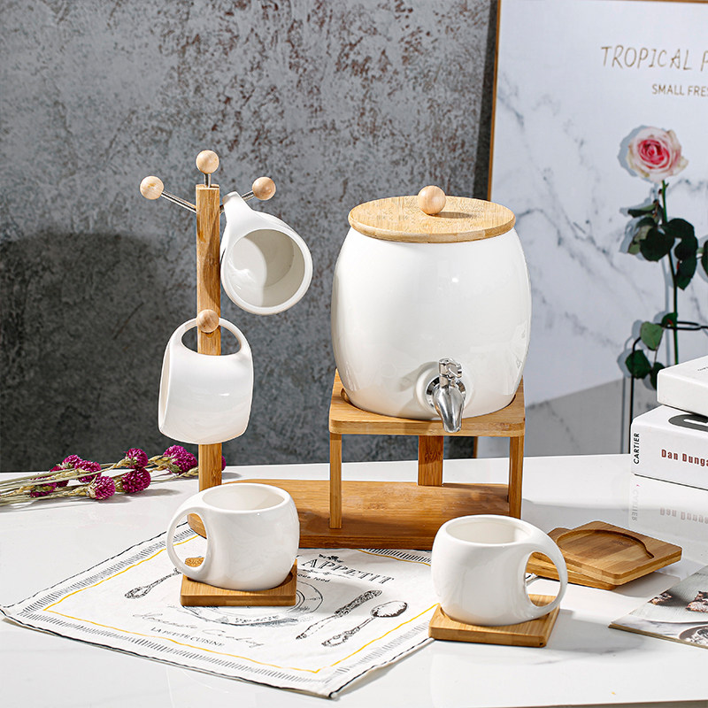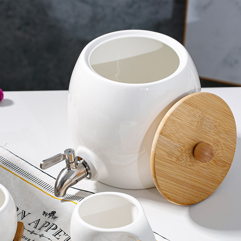 Home Cold Kettle Large Capacity High Temperature Resistant Lemon Juice Cool White Open Cold Kettle Cups Water set with tap