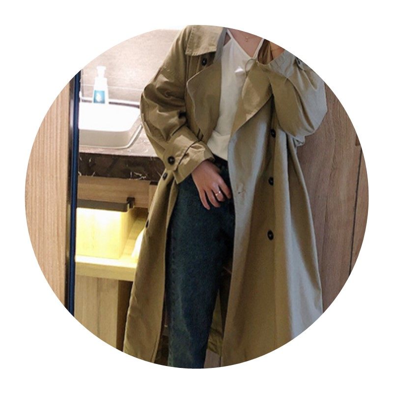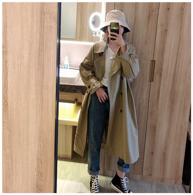 Khaki double-breasted trench coat women's long version 2020 spring and autumn Korean version of loose English style small coat tide