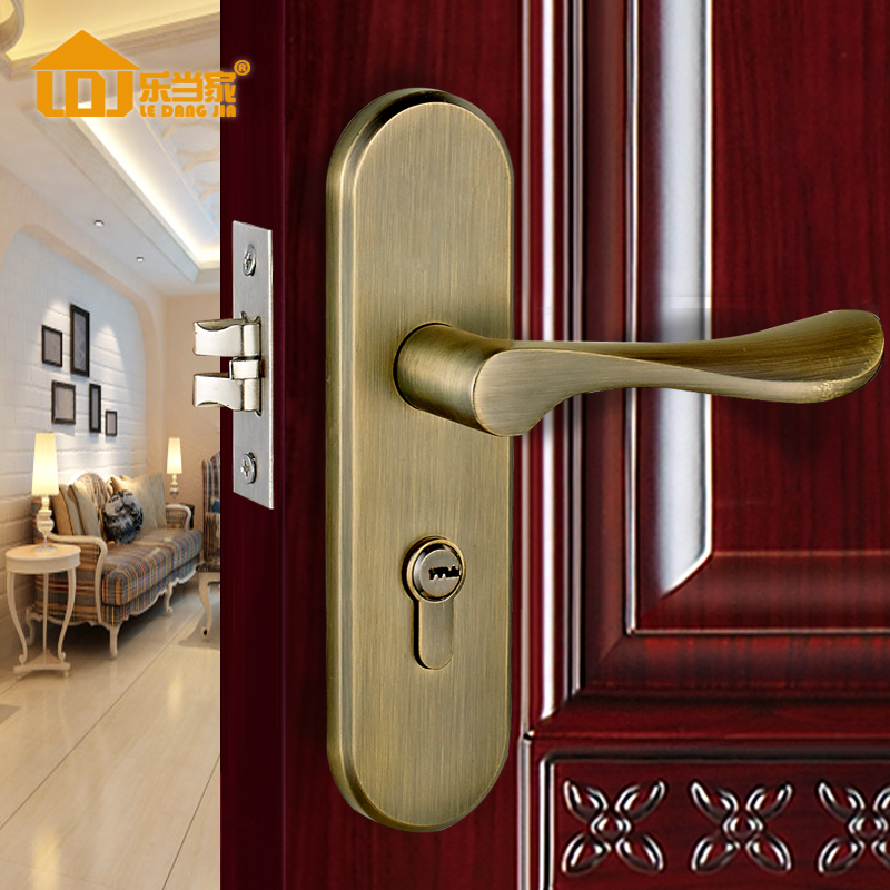 Le household door lock Simple brushed single tongue Indoor room door handle Powder room wrench lock European-style universal type