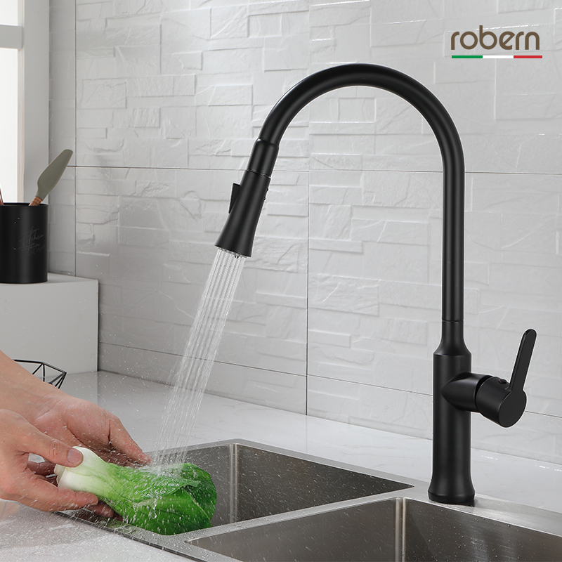 Robern Black All-Copper Pull-pulled Kitchen Faucet Cold and Hot Wash Basin Dishwasher Tank Tap