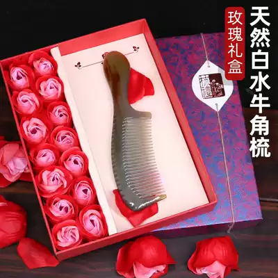 Large handle thickened white water horn comb fine teeth-high-grade gift box large handle thickened white water horn comb rough teeth-high-grade gift box large handle thickened white water horn comb fine teeth-rose gift box