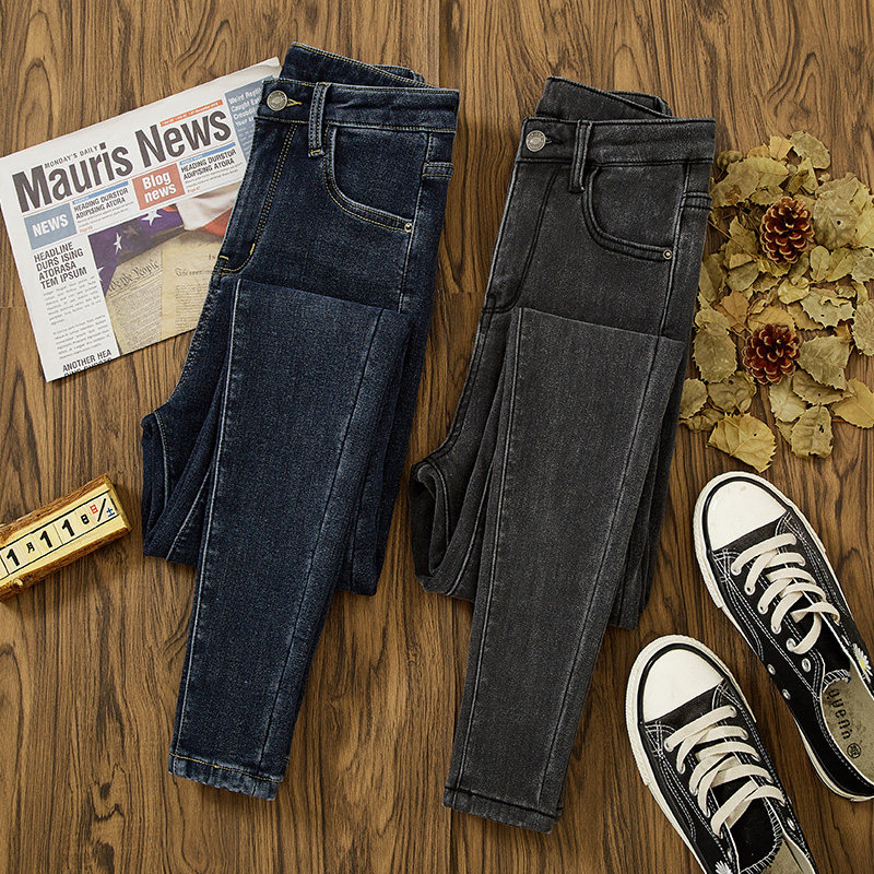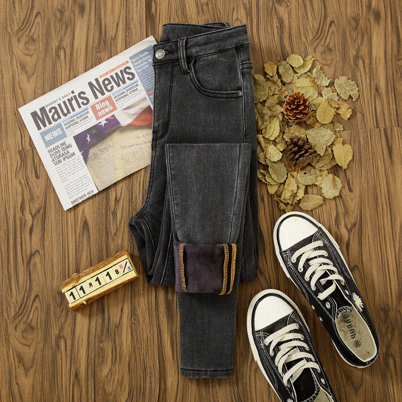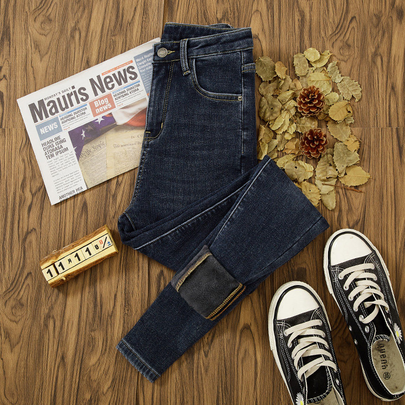 High Waist Jeans Women Winter Plus Suede 2021 New Tight Fit Slim Fit Slim Fit Warm Thickened Long Pants Tide