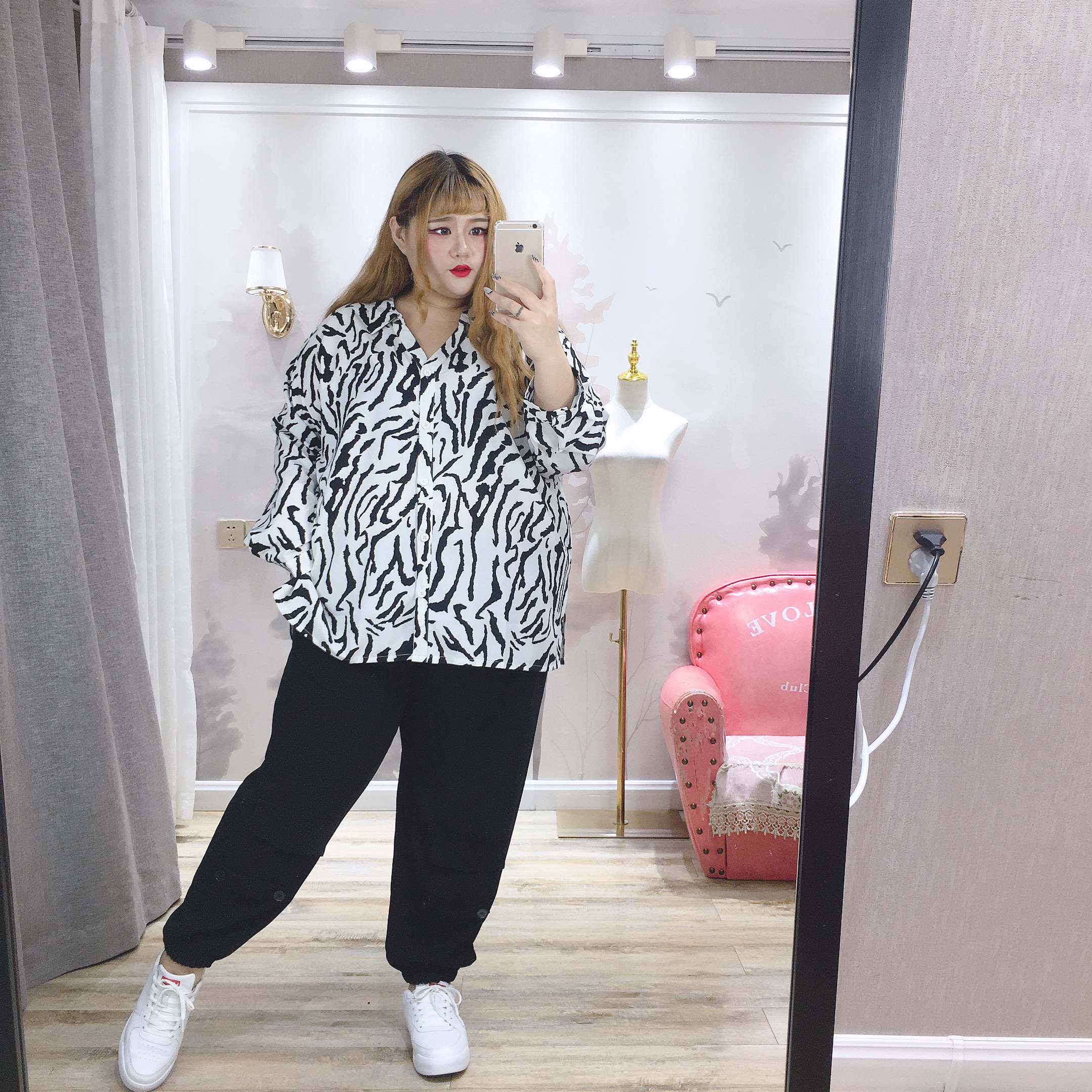 Fat fairy Yingying Ying Ying Ying Ying Ying Ying Ying Ying Ying Fat MM Han Edition Handle Simple Commuter Zebra Lin Shirt