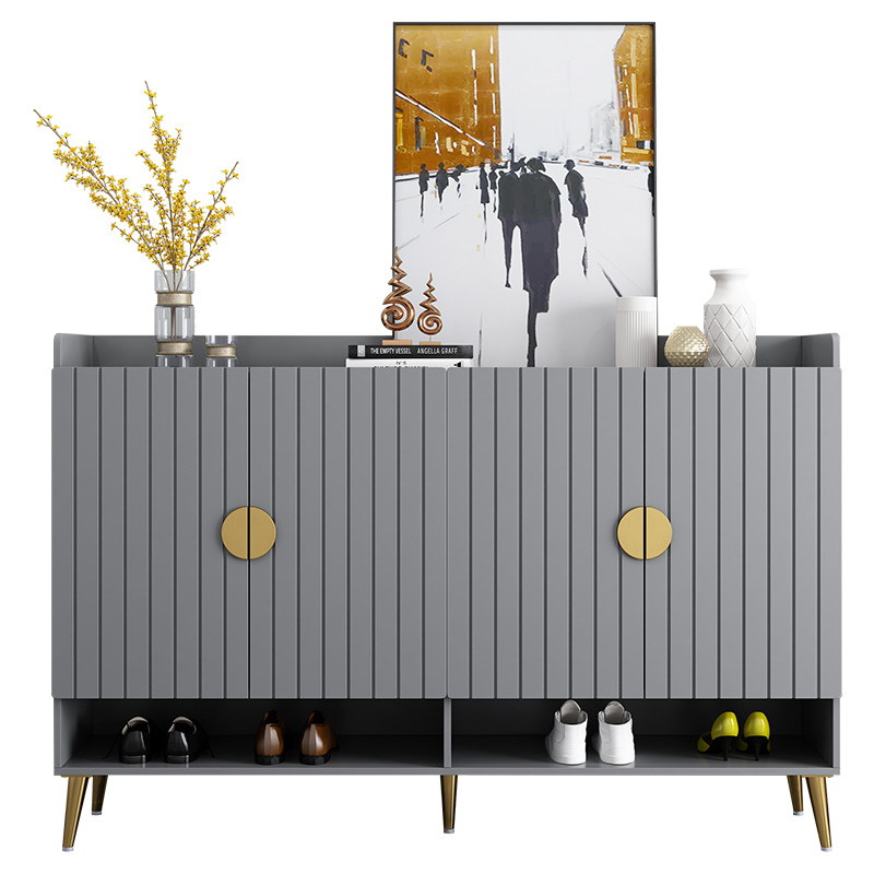 Light luxury gray four-door shoe cabinet + 100cm shoe changing stool