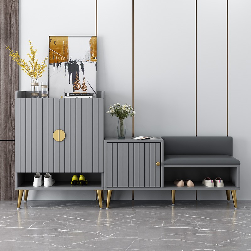 Light luxury gray two-door shoe cabinet + 100cm shoe changing stool