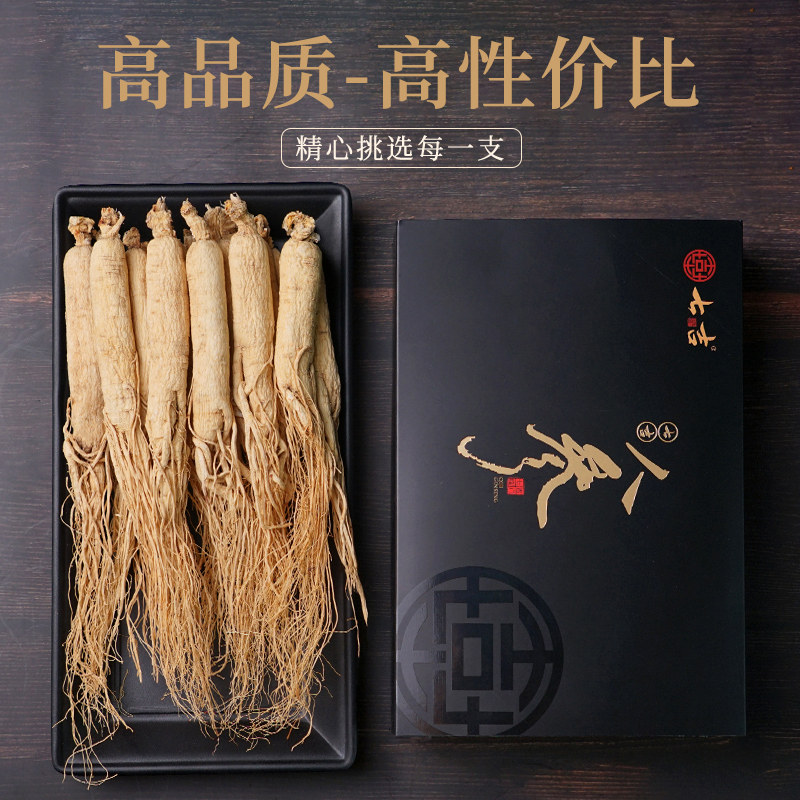 250g) Qiji Ginseng Changbai Mountain Northeast specialty dried ginseng Whole raw sun-dried ginseng bubble wine White Ginseng gift box Mountain ginseng