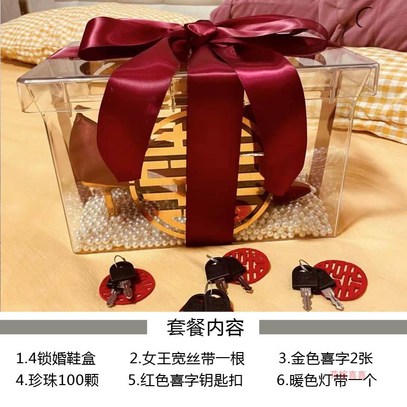Tibetan wedding shoe box with lock artifact transparent acrylic shoe box bride married whole person groom best man game props