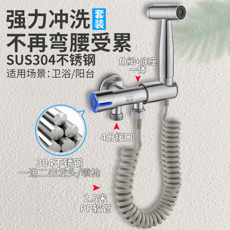 Stainless steel one-in-two-out multi-function one-in-two toilet mate water separator Double cut switch Three-way angle valve spray gun