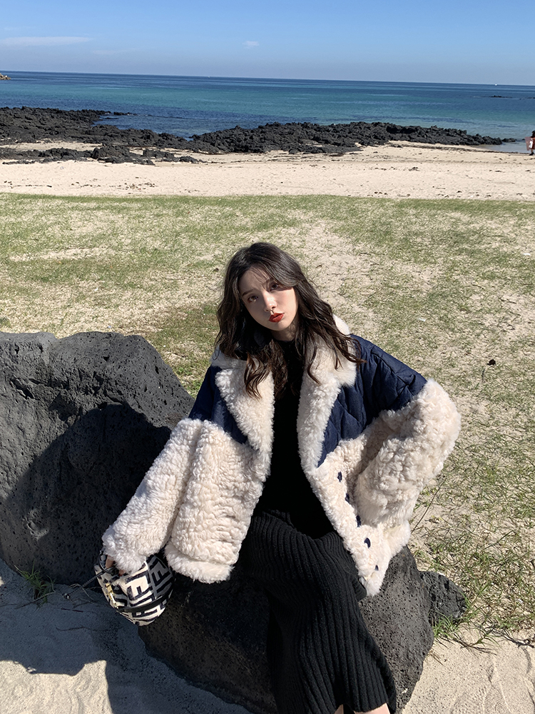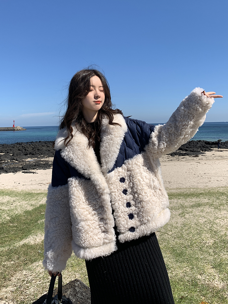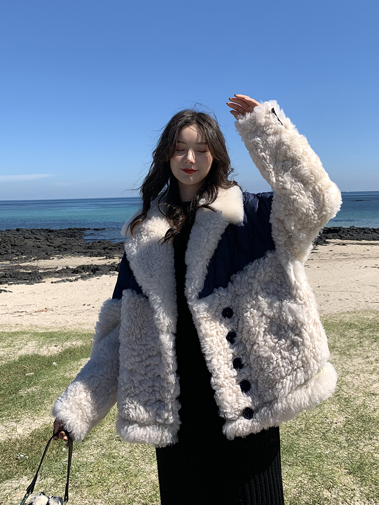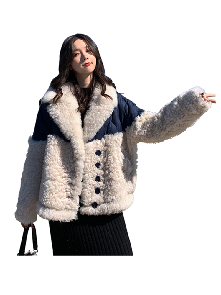 Lecea Alice lamb wool short coat women's 2022 winter new fashion loose plus velvet thick cotton clothing