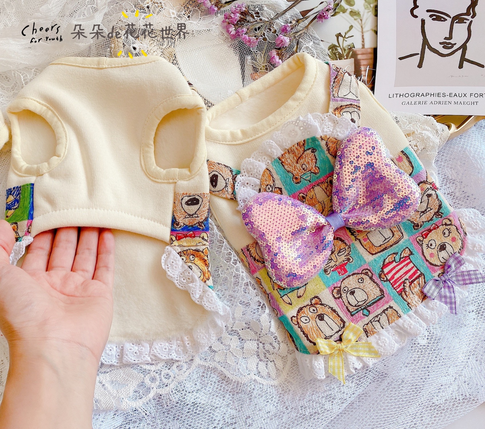 J Spring Autumn Winter Pet Dog Clothing Cat Teddy Yoke Summer Little Horse Imported Cartoon Fabric Plus Suede Vest