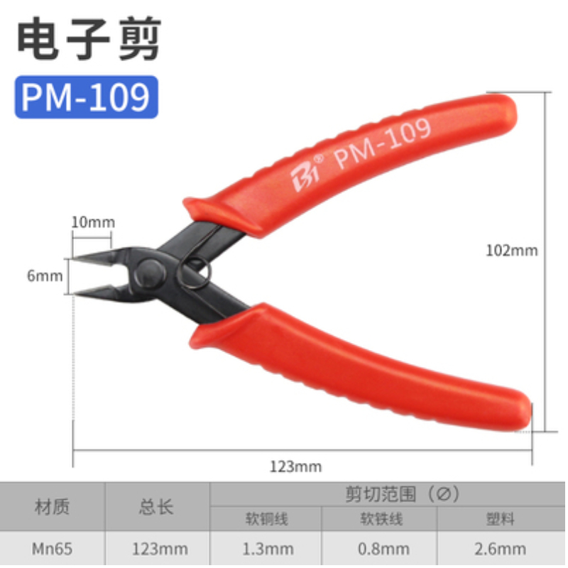 Mini 5 inch 6 inch electronic shearing pliers diagonal mouth pliers cut wire pliers plastic model water nozzle pliers PM109