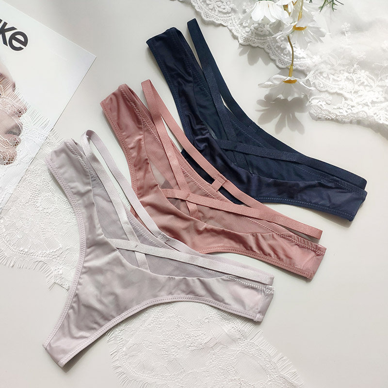 European and American Sexy Tiny pants female mesh yarn transparent Fashion fine belt Feng's hip pants without marks and comfortable pure cotton crotch