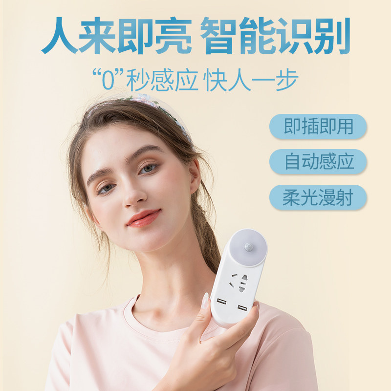 Intelligent human body induction LED light socket charging home wardrobe aisle stairs free wiring up night table lamp eye protection