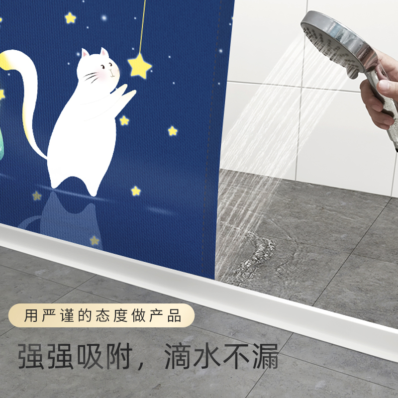 Magnetic shower curtain set non-punching shower curtain rod bathroom waterproof cloth shower partition window powder room water strip