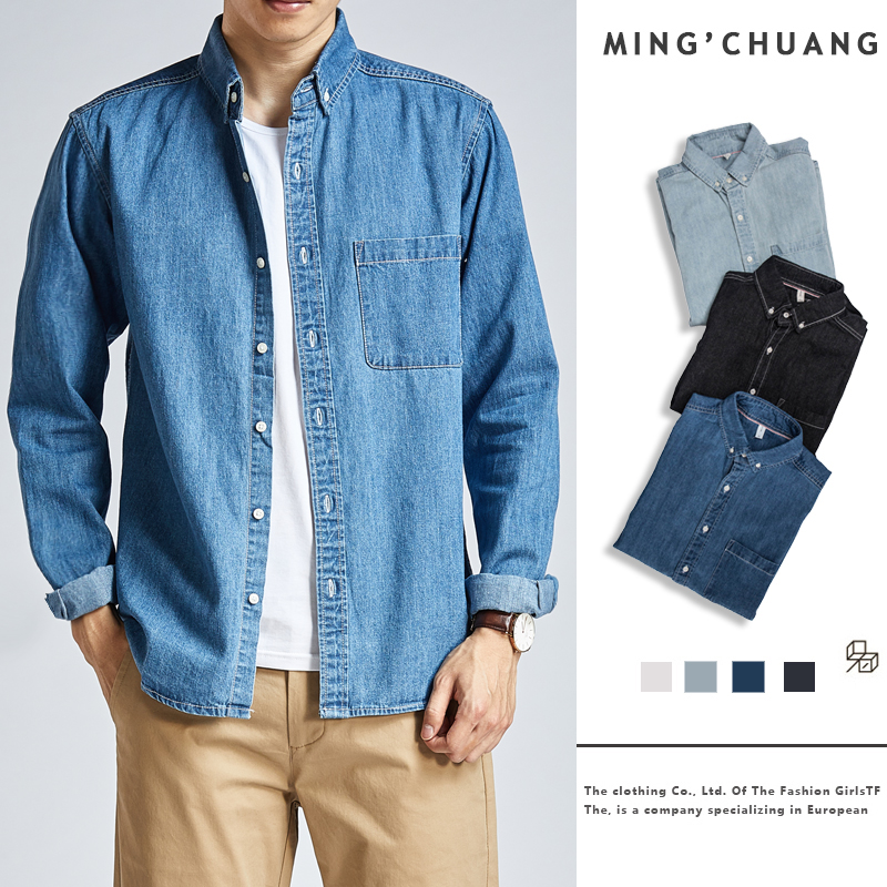 Men's jeans shirt spring and fall winter retro-sleeved long sleeves with pure cotton leads home cowboy coat trend