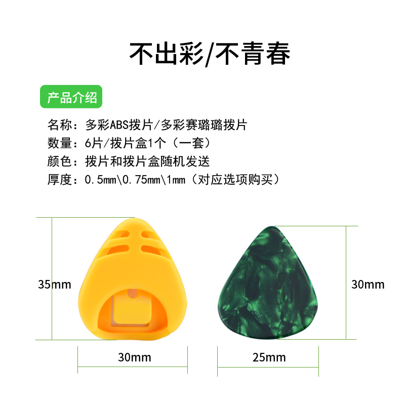 0 5mm (celluloid) 6-piece pick box 1 random delivery 0 75mm (celluloid) 6-piece pick box 1 random delivery 1mm (celluloid) 6-piece