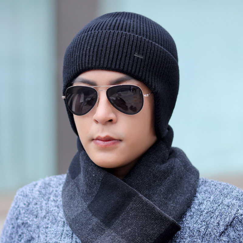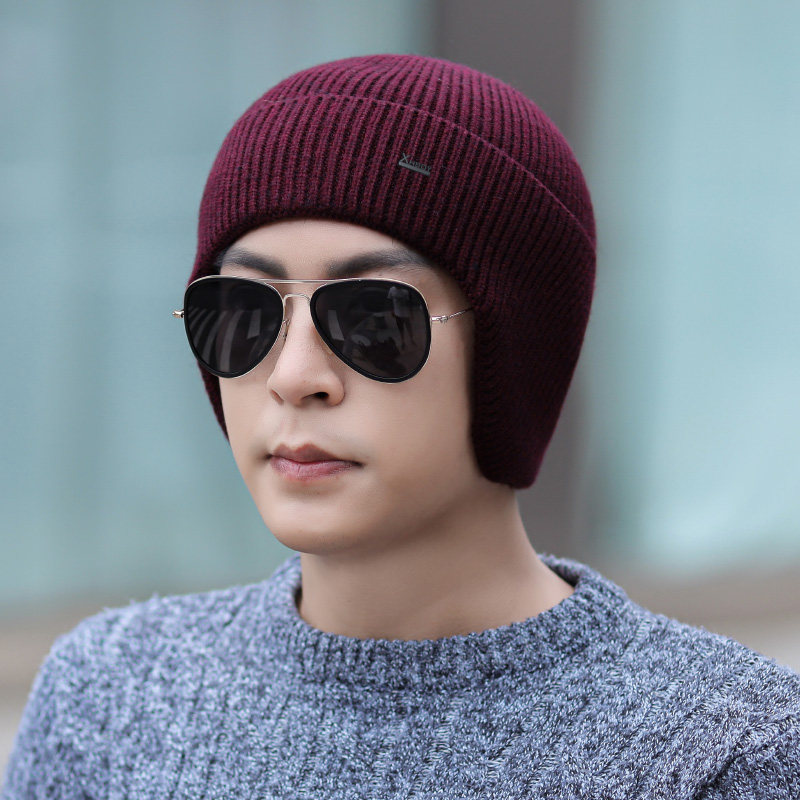 Hat man winter warm earmuffs winter thickened knit woolen cap outdoor cycling cap without plush muffs