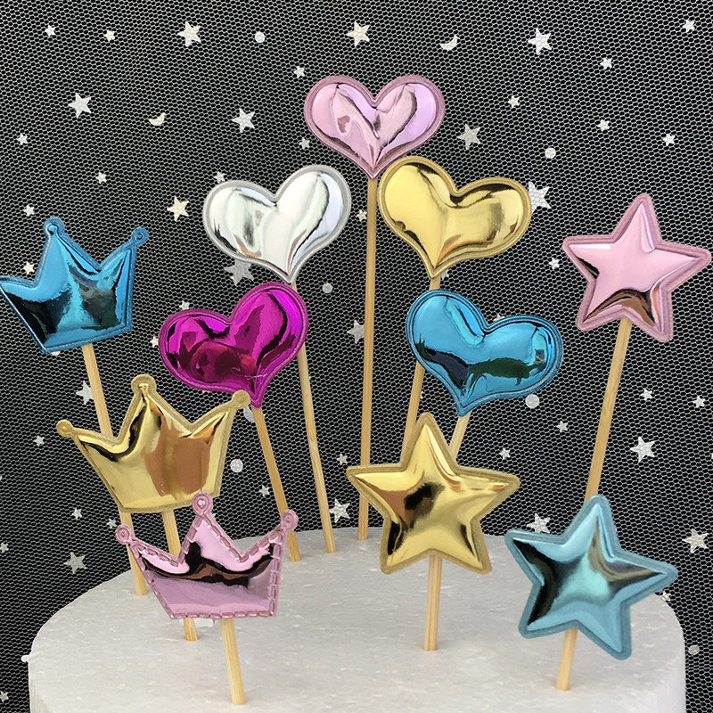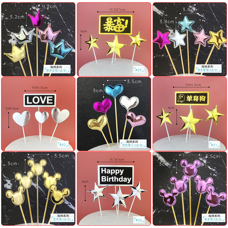 pu cortex sequin loving cake decoration plug-in plug-in net red pentagram stars children birthday baking inserts-Taobao