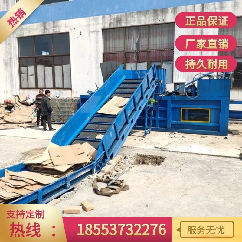 Waste station recycling waste paper horizontal hydraulic baler video automatic feeding pressing machine can flattening machine