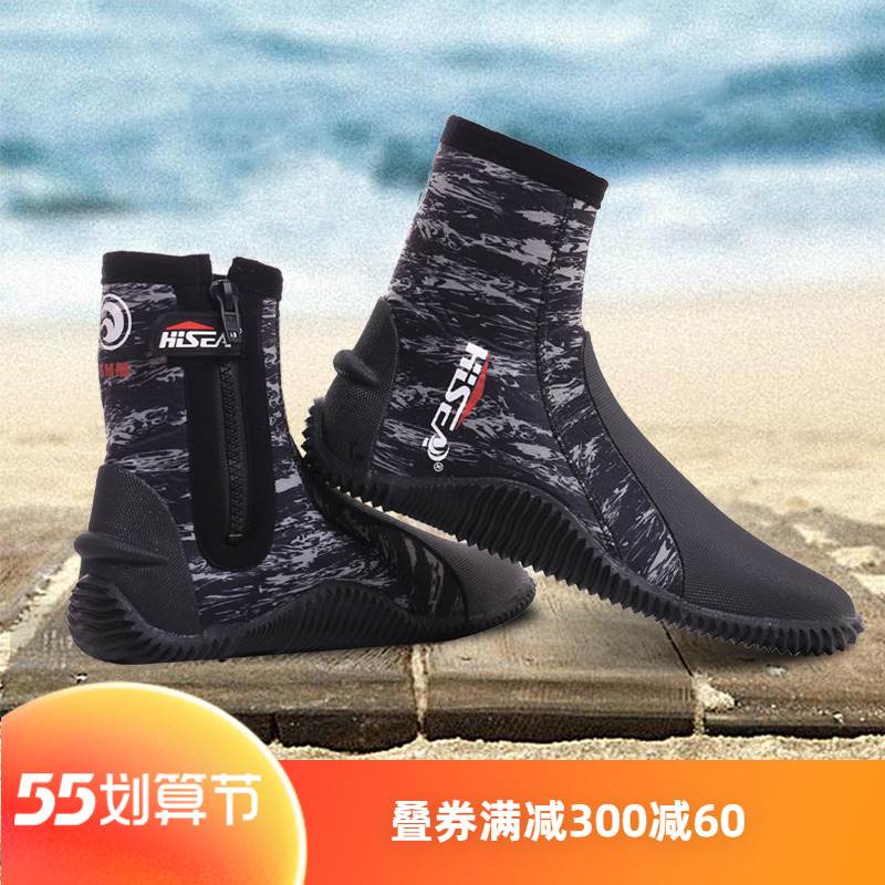 High cylinder diving boots male and female anti-cutting anti-slip thickened bottom diving shoes 5mm in water Anadromous catching sea equipment snorkeling